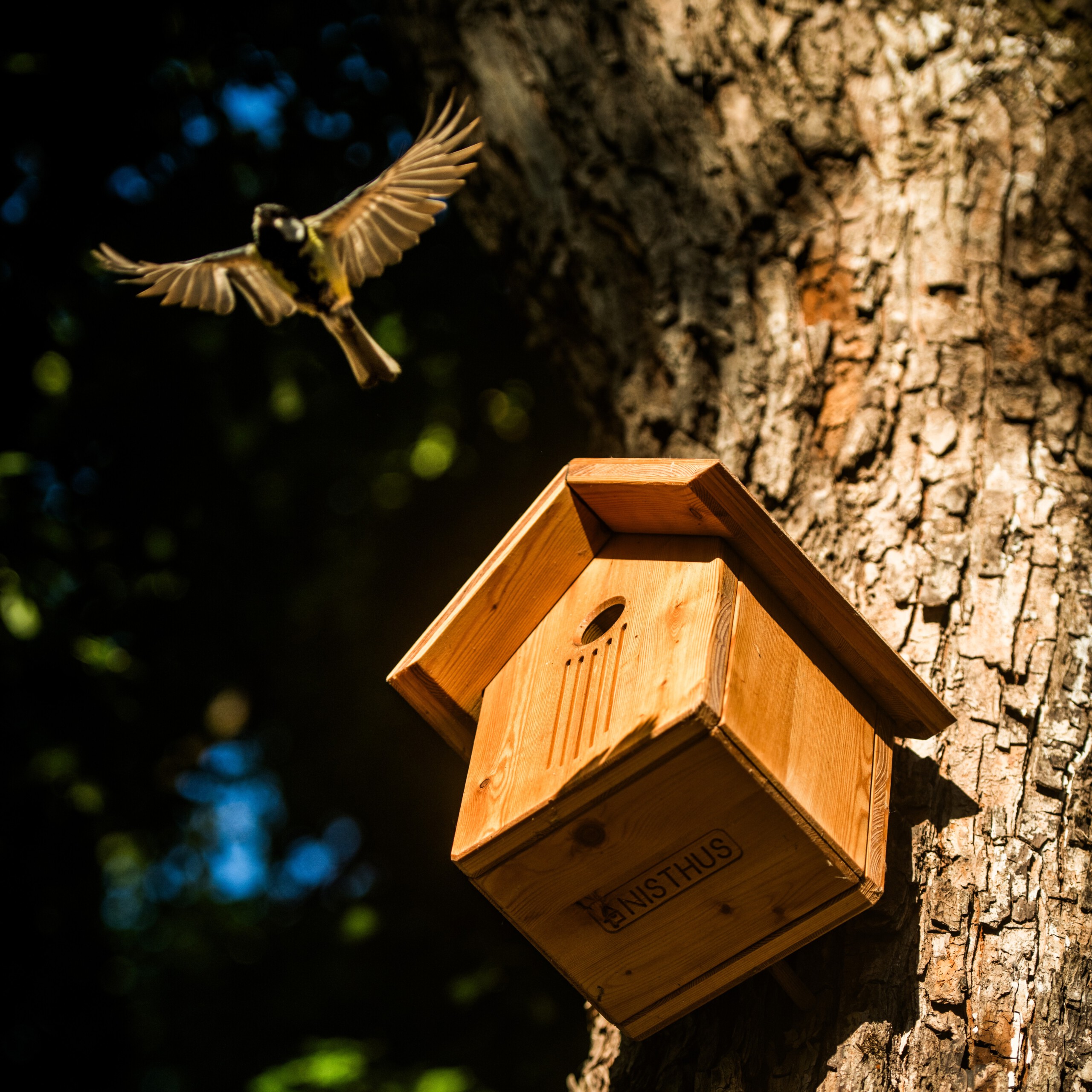 Gutes tun: Mit einem Nistkasten leistest du einen wertvollen Beitrag zum Schutz heimischer Gartenvögel. Der Verlust natürlicher Lebensräume macht es nämlich vielen Arten schwer, geeignete Nistplätze zu finden – alte Bäume mit Höhlen fehlen, moderne Häuser bieten kaum noch Nischen. Mit einem Nistkasten schaffst du einen geschützten Rückzugsort, in dem Vögel ungestört ihren Nachwuchs aufziehen können – vom Ei bis zum ersten Flugversuch!